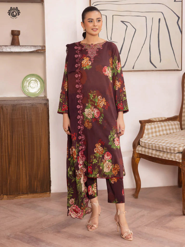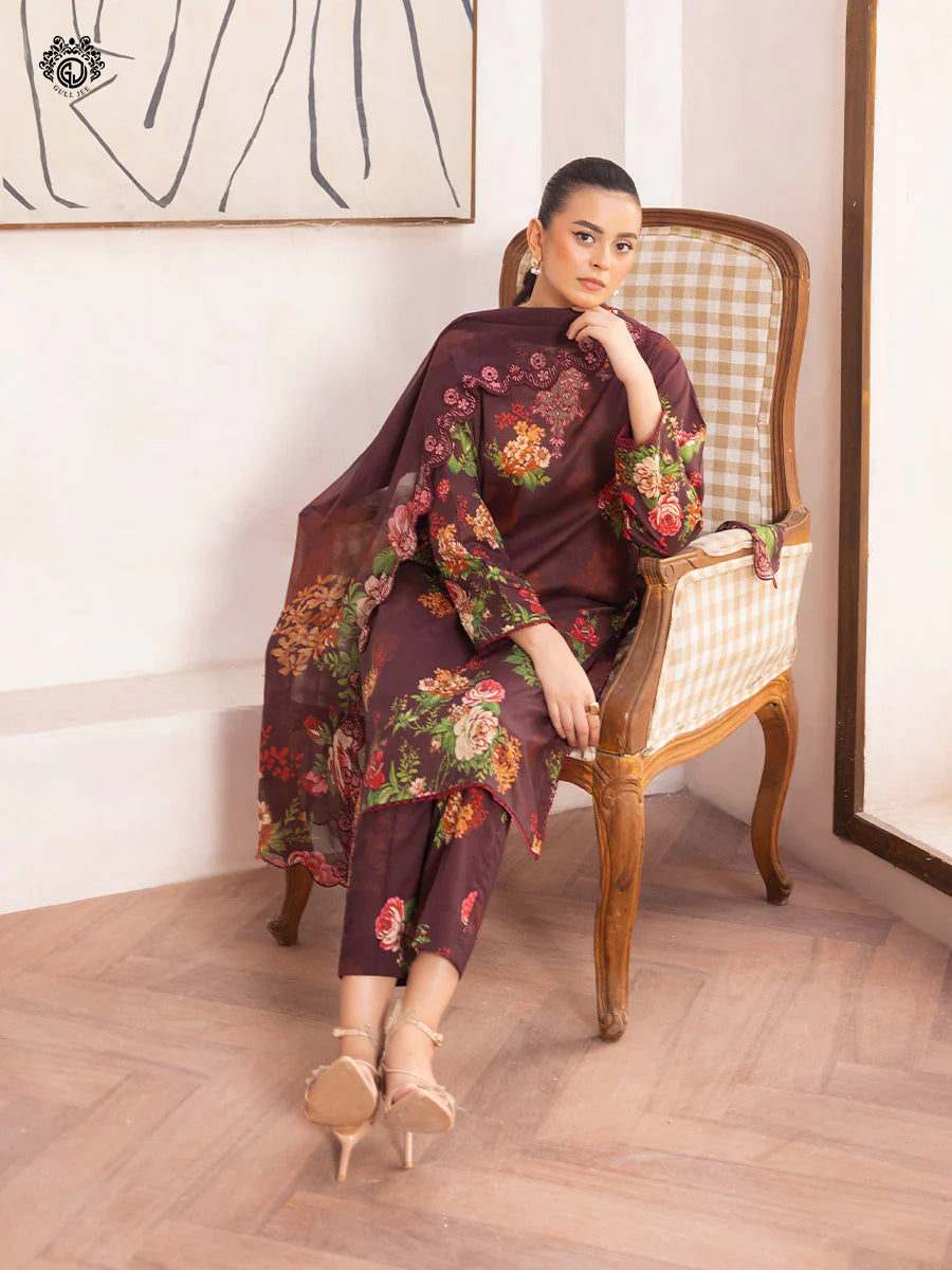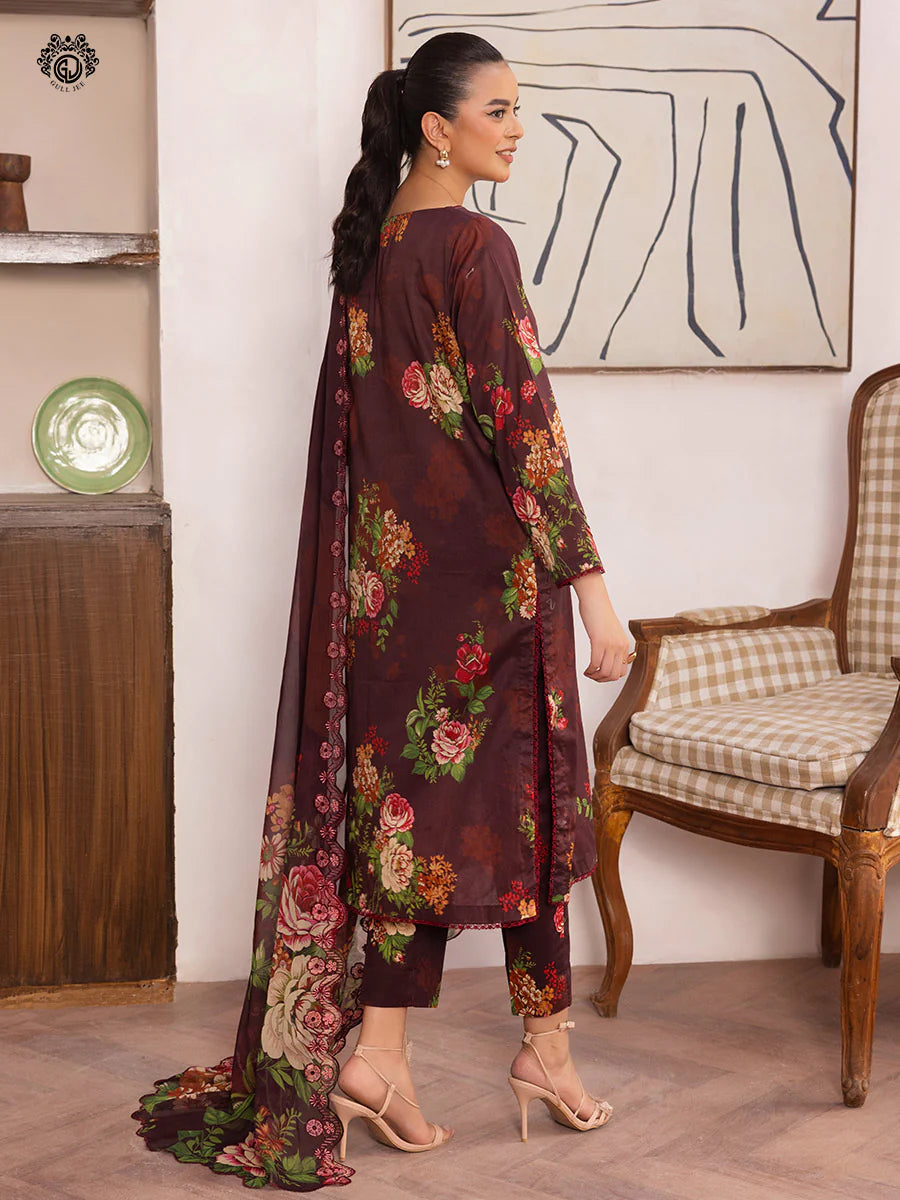 Pakistani Ziva by Gulljee Digital Printed Lawn Unstitched Three Piece - Deep Coffee