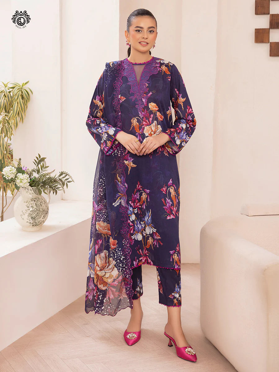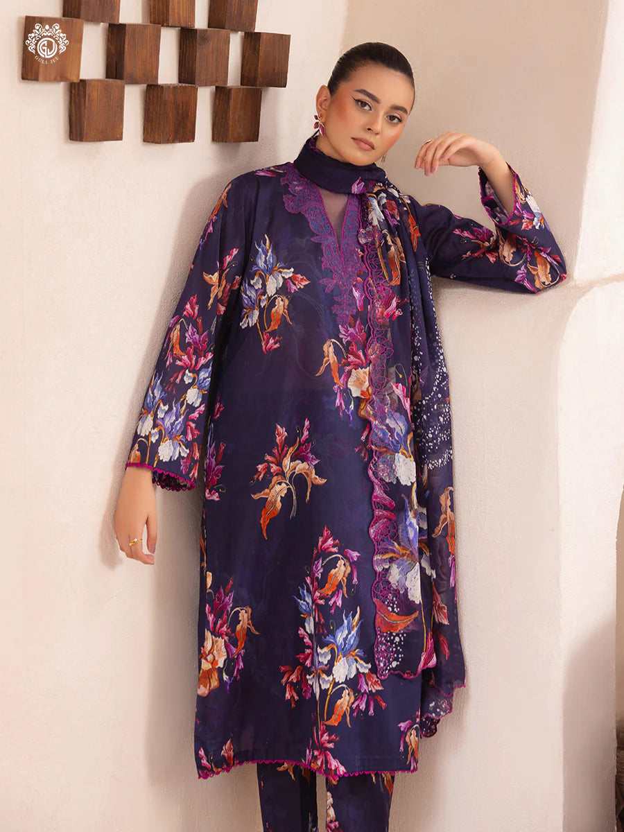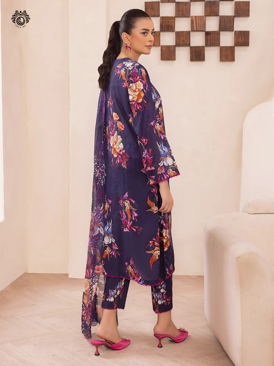 Pakistani Ziva by Gulljee Digital Printed Lawn Unstitched Three Piece - Plum Purple