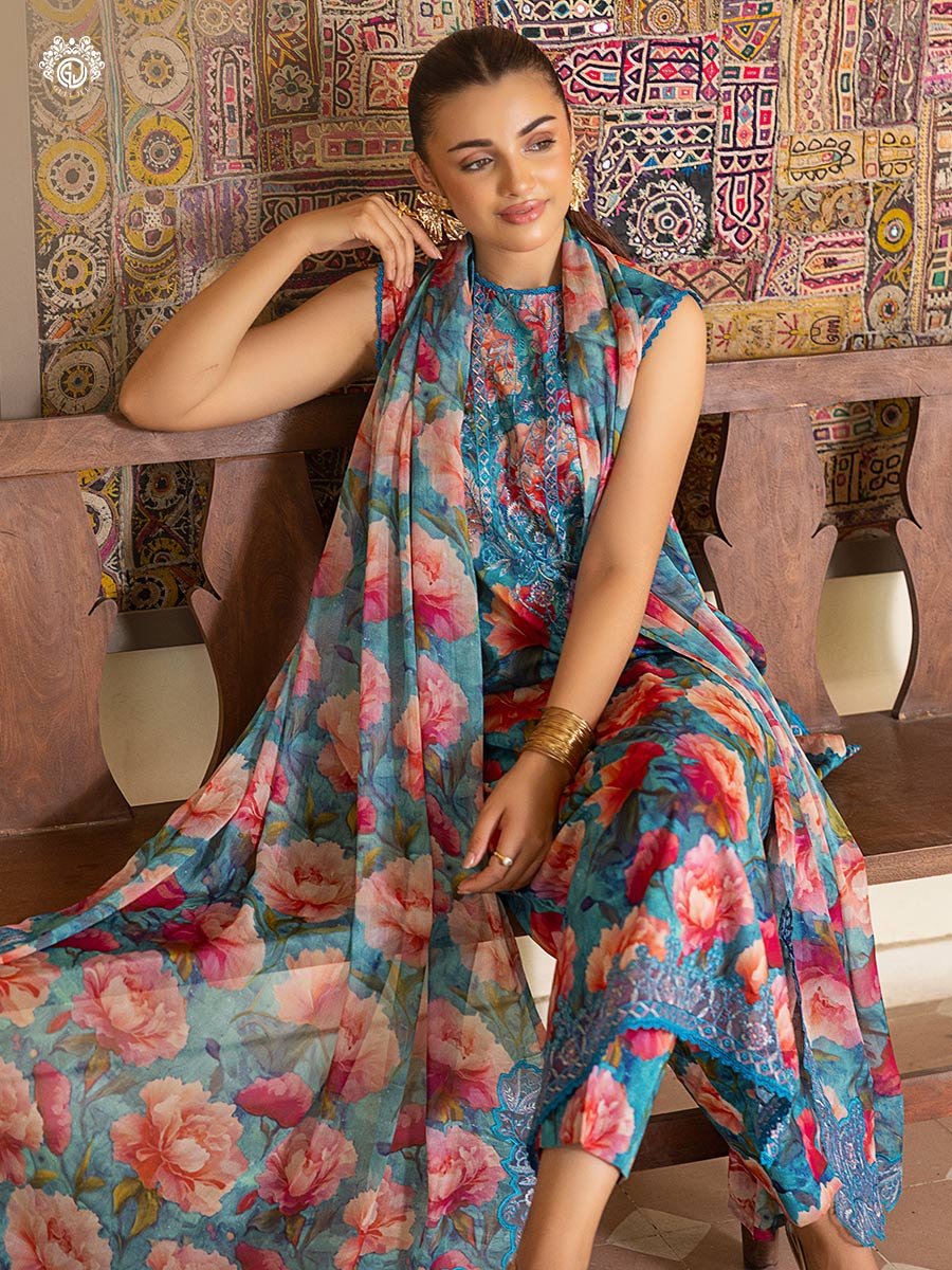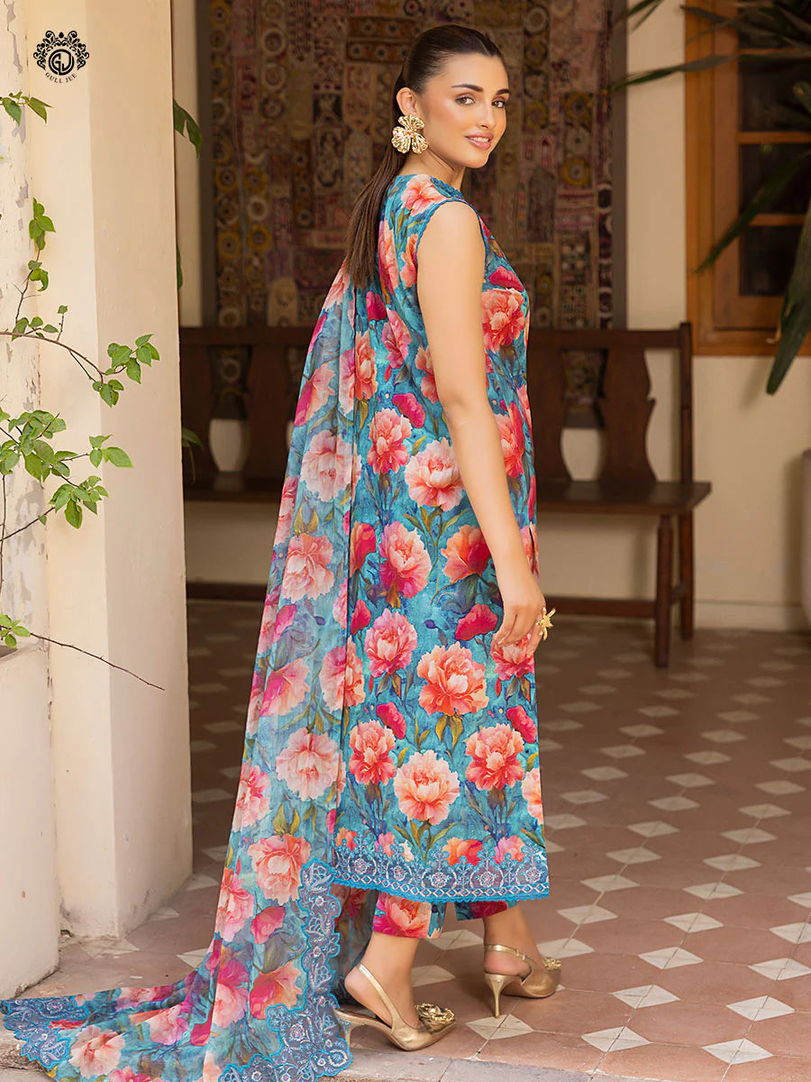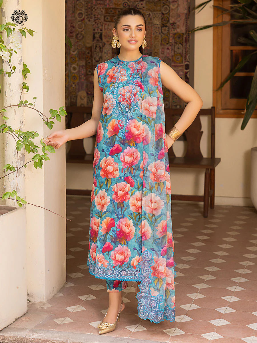 Pakistani Ziva by Gulljee Floral Printed Lawn Unstitched Three Piece - Blue Hosta