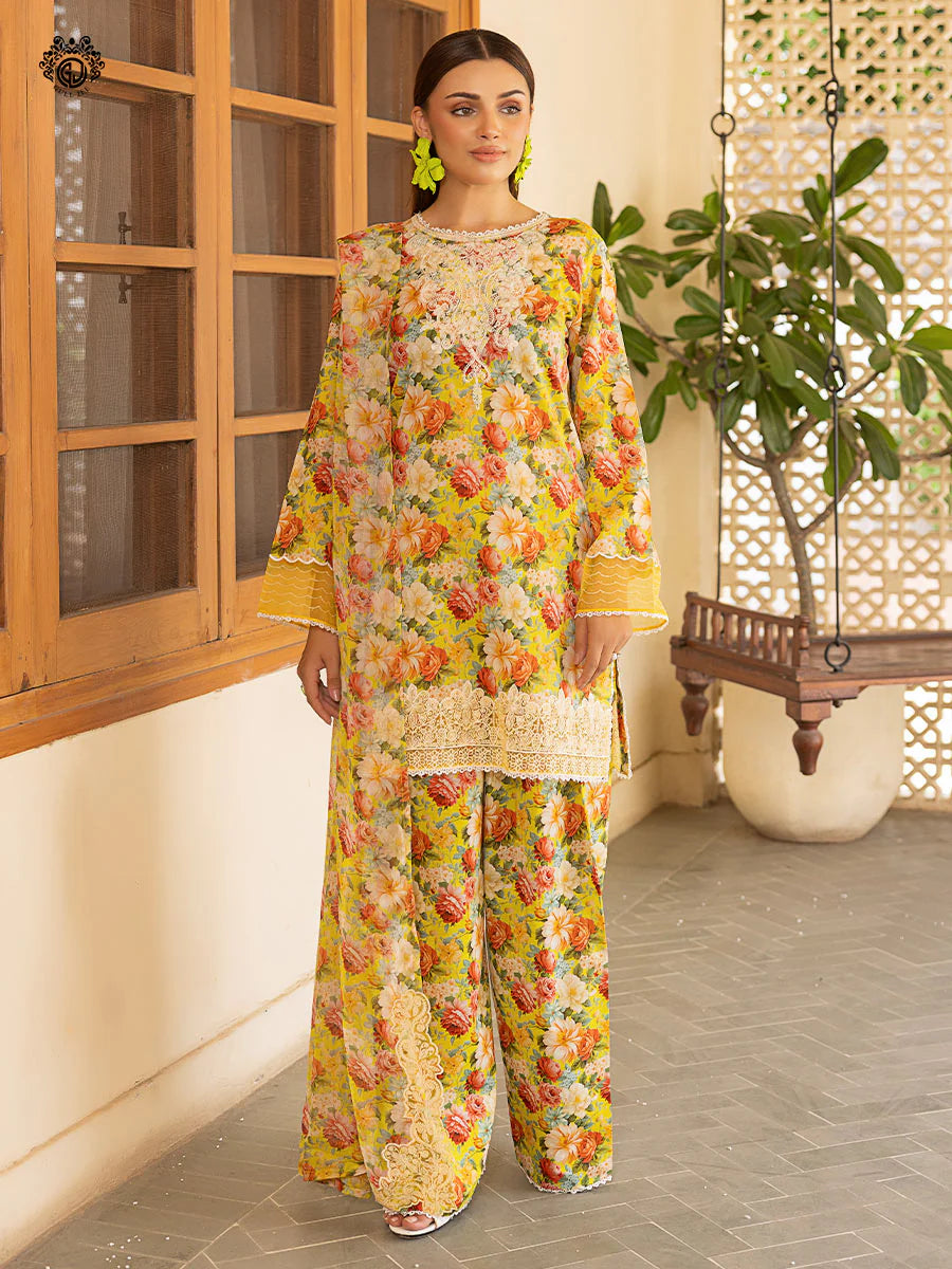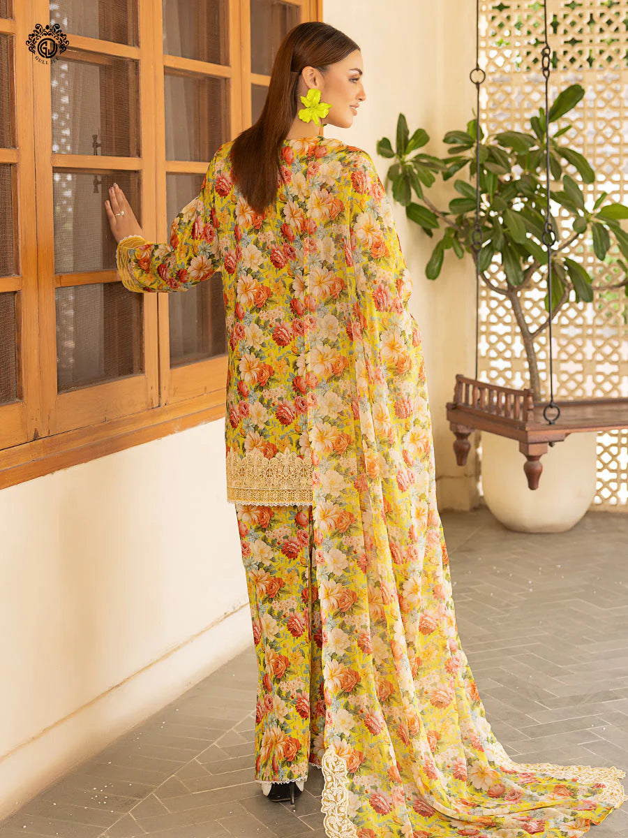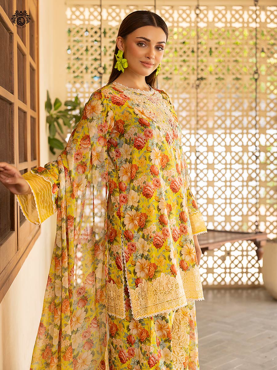 Pakistani Ziva by Gulljee Floral Printed Lawn Unstitched Three Piece - Sunglow